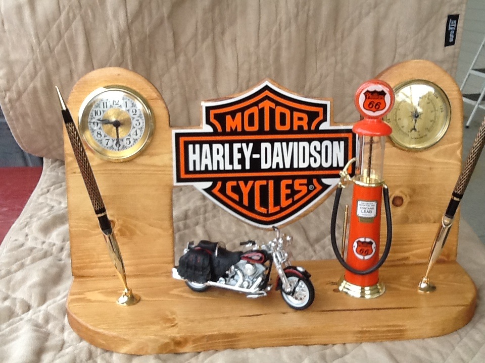 Clock-1 Published September 21, 2013 at 960 × 720 in Harley Davidson Executive Desk Set with Vintage Phillips 66 Gas Pump-Harley Bike-Brass Clock-Thermometer-Pen & Pencil Harley Davidson Executive Desk Set With Clock, Thermometer, Pen, Vintage View Gas Pump, Note Clip