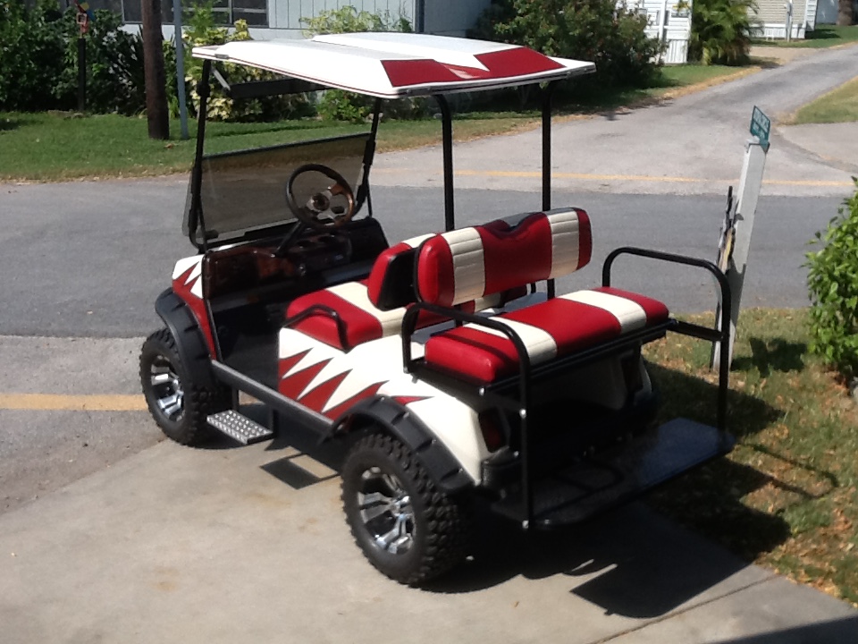 IMG_1866 Published August 3, 2015 at 960 × 720 in Golf Cart Photos ← Previous Next → “SHARK” 48 Volt Club Car DS w/6″ Jake’s Lift Kit, Flip Rear Seat, Metallic Red & Ivory Paint Like Loading...